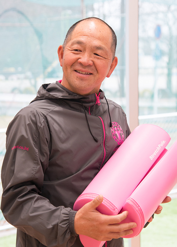 基本的にストレッチポールのエクササイズには、“身体の歪みを正し良い姿勢を作りだす”作用があります。その使い方の他にも、ハーフカットのストレッチポールを用いて歩かせたりと楽しみながらバランスを鍛えたりと創意工夫して多様な動きを実践しています。