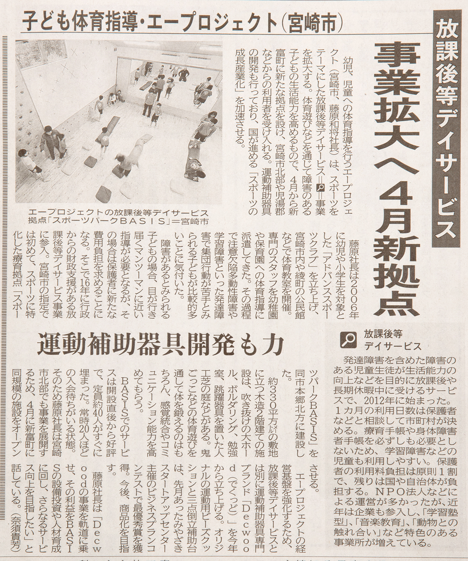 ●宮崎県日南市のNPO法人ハッピークレヨンからの依頼で発達障害・知的障害を持った子ども達対象に年間を通し体育指導を実施 等